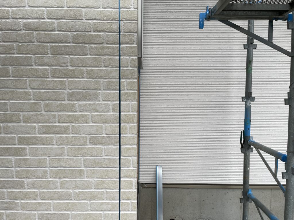 同じ白系の外壁でも、青白いような白と、エイジングされたようなレンガ調の白で印象がガラっと変わります。