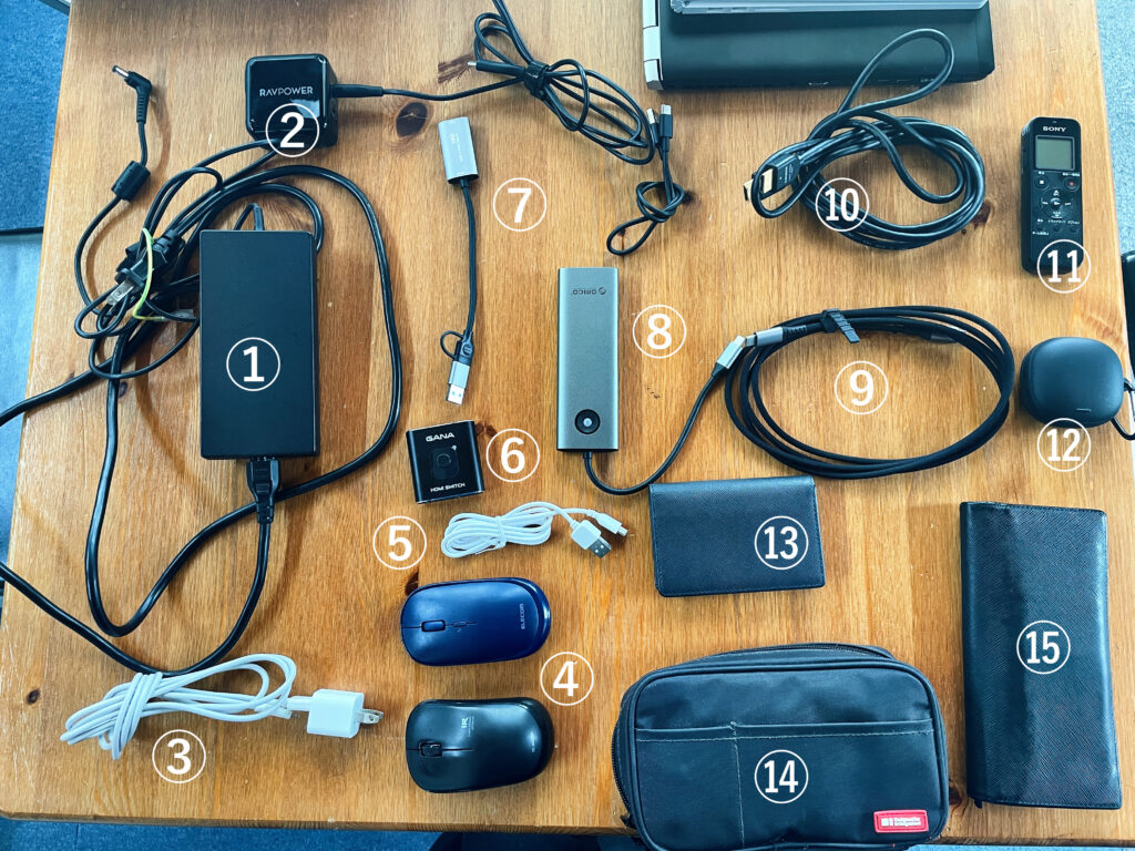 ⑪ICレコーダー・・・大事な会議や打合せは後で文字起こしするので、その際に忍ばせています。
